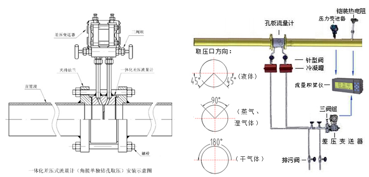 5.一體型孔板流量計(jì)安裝更簡單,無須引壓管,可直接接差壓變送器和壓力變送器。