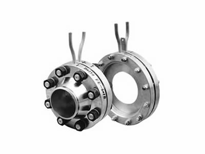 是由相互按一定距離安裝在直管道中的兩塊標(biāo)準(zhǔn)孔板組成。依流束方向而言,前面的孔反稱為輔孔板,后面的孔板稱為主孔板。輔孔板的截面比m1大于主孔板的截面比m。兩塊孔板構(gòu)成了類似帶液壁的噴咀。它用于低雷諾數(shù)流體或高粘度的流量測量。