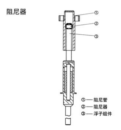 其實(shí),各種流量計(jì)在安裝使用時(shí)都強(qiáng)調(diào)前后直管段距離,一般是前10后5,如超聲波流量計(jì),有些流量計(jì)甚至前端要達(dá)到30倍管徑距離,主要是為避開上游的調(diào)節(jié)閥、彎管等擾亂介質(zhì)流態(tài)的設(shè)備,使流量計(jì)能在一個(gè)流態(tài)相對(duì)穩(wěn)定的測(cè)量點(diǎn)進(jìn)行流量測(cè)量,以獲得準(zhǔn)確的流量數(shù)據(jù)。在使用垂直安裝金屬管浮子流量計(jì)時(shí)也一樣,如果流量計(jì)的入口流量(壓力)不穩(wěn)定,尤其是對(duì)于氣體的測(cè)量,為保證儀表的測(cè)量精度和延長(zhǎng)儀表的使用壽命,設(shè)計(jì)了阻尼器結(jié)構(gòu),它的結(jié)構(gòu)如圖所示。